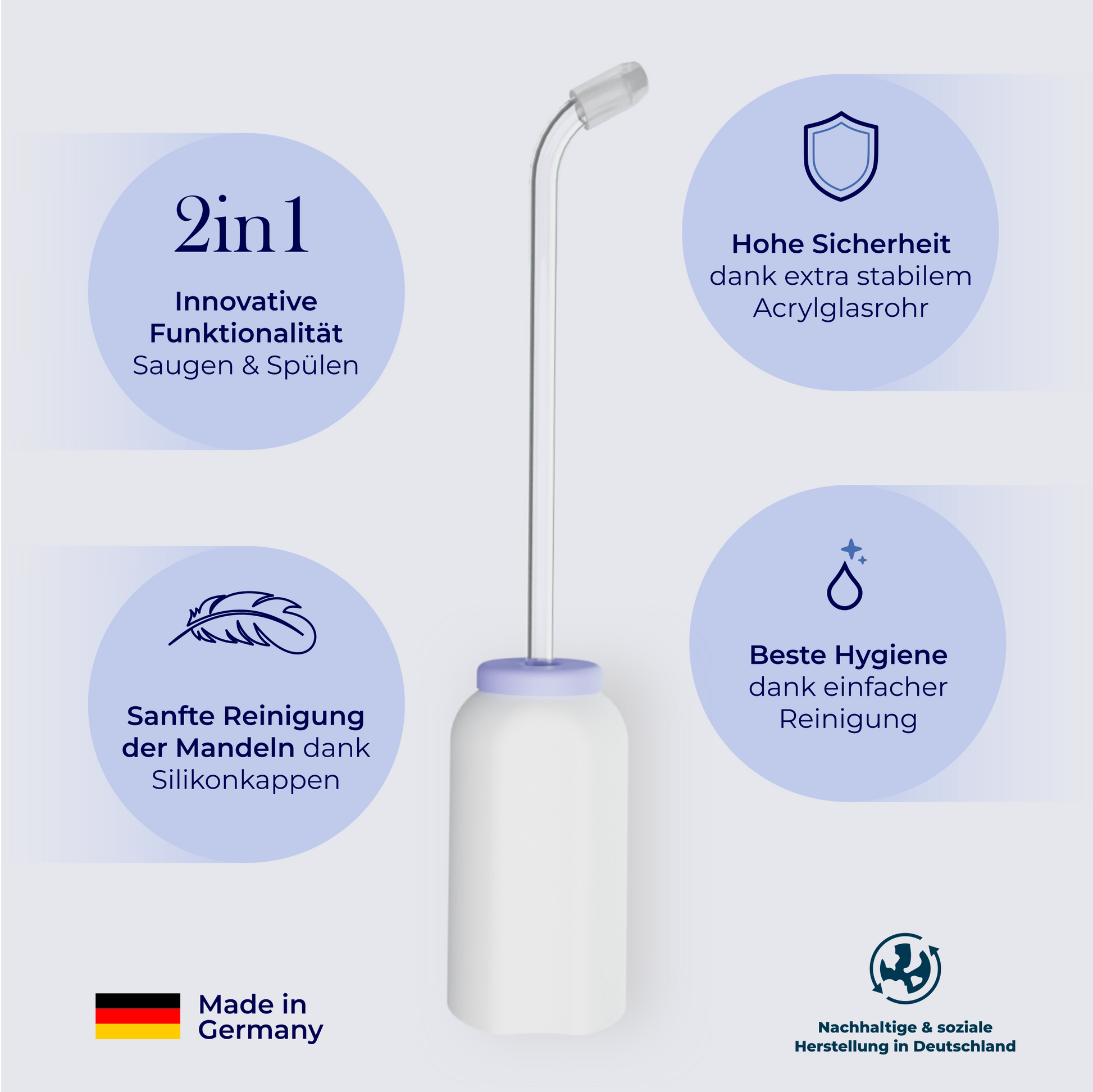 Mit unserem 2in1 Mandelstein Entferner bekommst du zwei Funktionalitäten in einem Produkt. Wir haben die Vorteile der Munddusche mit den Vorteilen eines Schröpfglases kombiniert und daraus eine einzigartige Methode entwickelt, um die lästigen Mandelsteine effektiv zu bekämpfen.